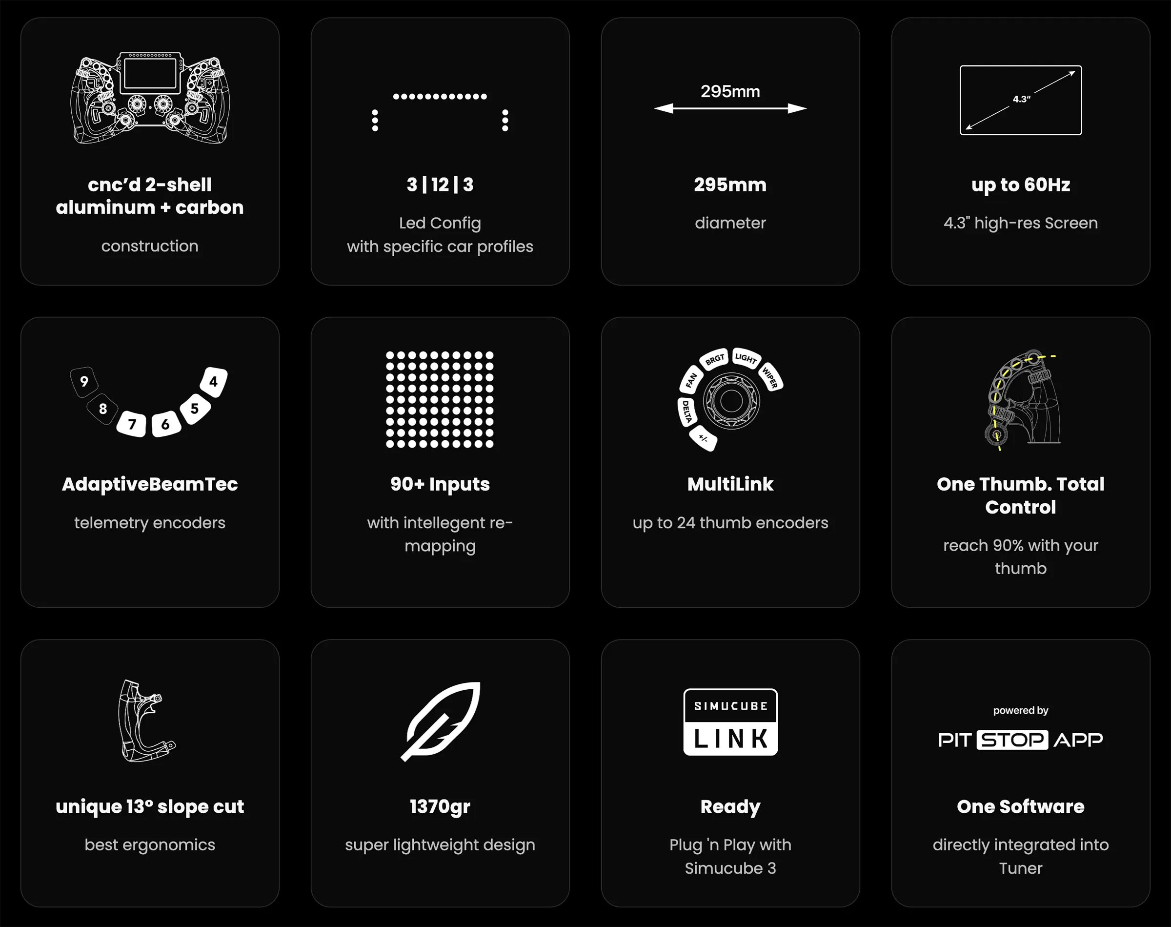 Vadonatúj, nagy felbontású, 60 Hz-es érintőképernyővel, 600 MHz-es processzorral és teljes Simucube Link kompatibilitással rendelkezik.